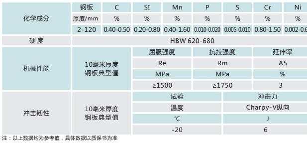 圖(1)KN60耐磨鋼板的各項參數(shù)