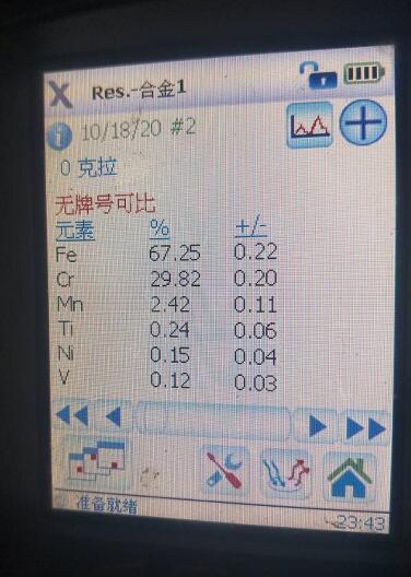 顯示鉻含量在23,主要原因是沒有打磨,只是采用砂紙簡單打磨了一下