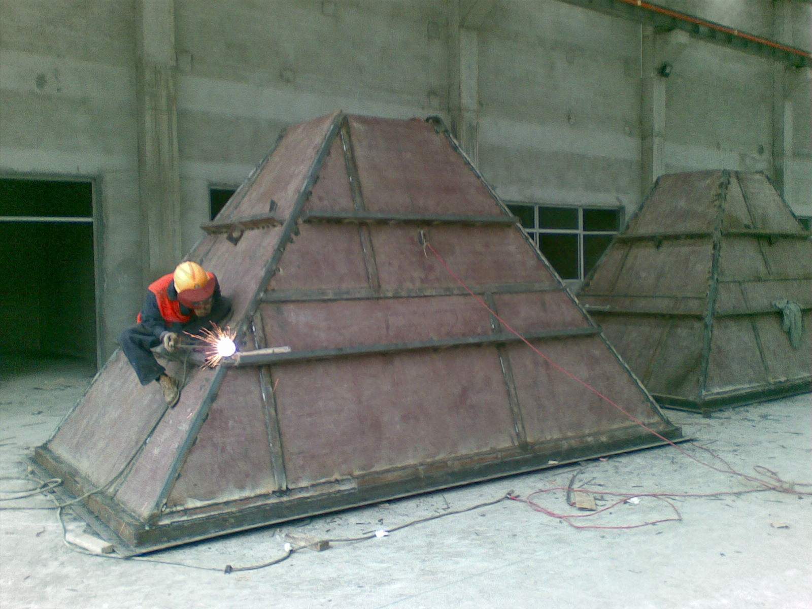 圖(1)水泥廠的下料槽檢修,內(nèi)襯耐磨材料